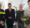 Burgemeester Ton Strien en Ronald van den Broek van de politie hebben Erik en Jelle Roelofs uit Olst woensdag 29 april bedankt voor hun kordate optreden begin dit jaar.